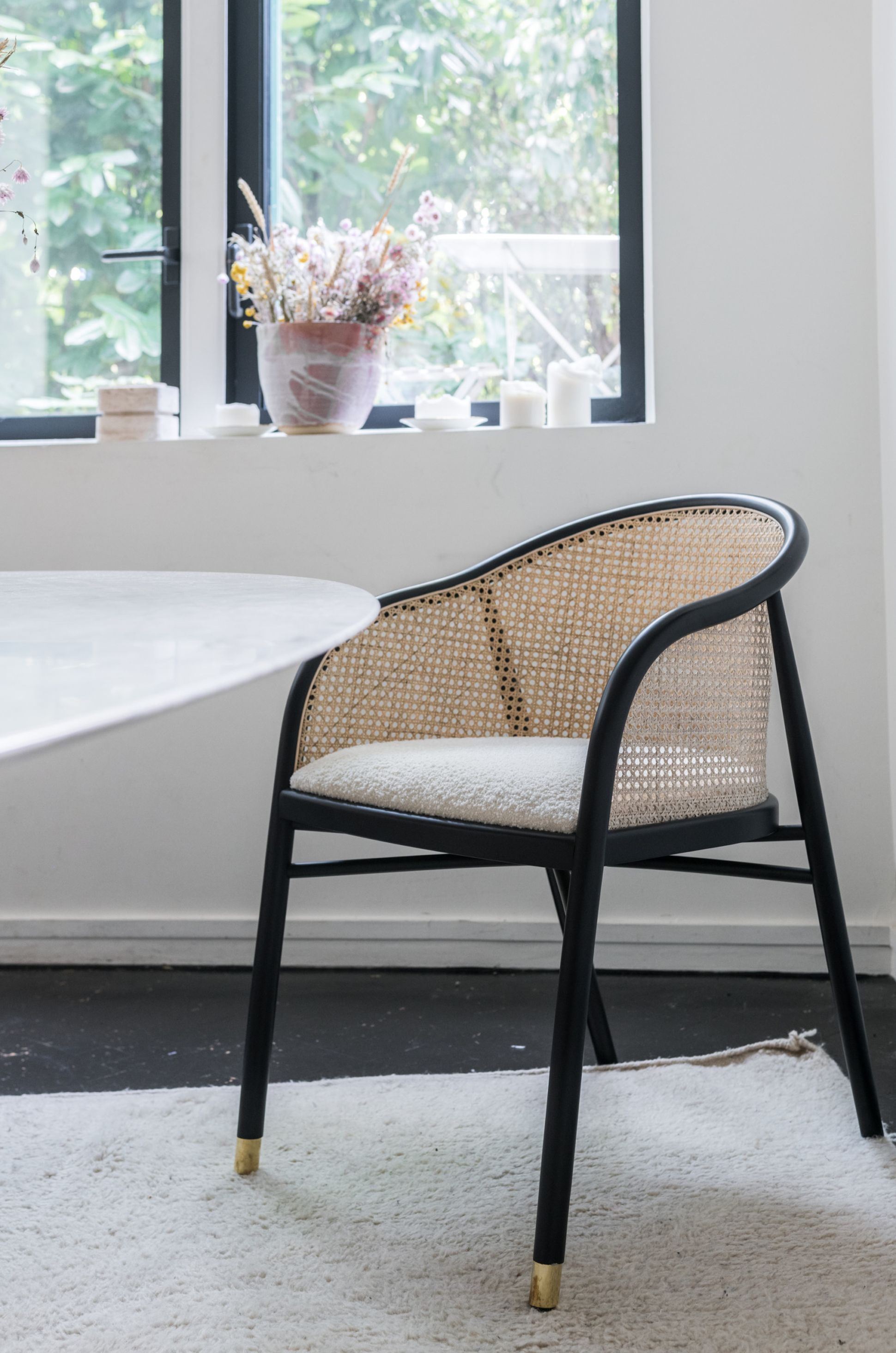 Qu’elle soit immaculée ou encore contrastée arborant un mélange noir et blanc ou en uni vert, la laine bouclette s’exprime généreusement sur les réalisations The Socialite Family, et ce, tout en sensualité. Une étoffe réconfortante – clin d’œil amusé aux années seventies chères à notre créatrice Constance Gennari – dont notre studio de création raffole et s’amuse à décliner l’utilisation, des accessoires déco aux pièces signatures plus imposantes. Des pièces hautement désirables à adopter chez vous pour ravir votre œil. En total look sur notre iconique canapé Rotondo déhoussable — accompagné de notre voluptueux Bomboloni —, comme sur l’assise de notre chaise Libera ou notre banc Chiesa, ou encore sur la galette de notre fauteuil Cavallo — pour un mariage de matières nobles —, la laine bouclette se révèle avec caractère tout en conservant son incontournable douceur. Chaleureuses et sophistiquées, ces quatre références vous suivront du salon à la salle à manger en passant par votre chambre, pour des espaces de vie tout aussi élégants que bienveillants. Intemporelles, nos créations au charme subtilement rétro plairont, il est certain, aux petits et grands !